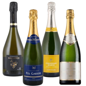Ausschließlich jene Trauben, die in den kalkhaltigen Böden der Champagne wurzeln, dürfen in die magischen Cuvée der Schaumweine aus der Region fließen. Es handelt sich um einen geschützten Begriff. Seit 2015 gehören die Champagnerhänge, -häuser und –keller sogar dem Unesco Weltkulturerbe an. In diesem Probierpaket finden sich vier ehrenwerte Vertreter jenes geschichtsträchtigen Gebiets zusammen.