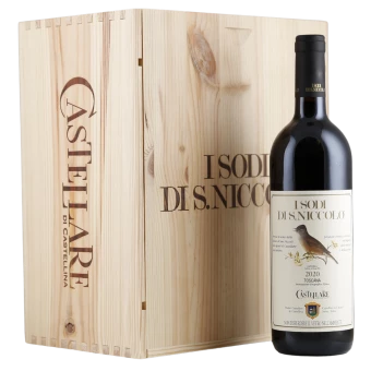 6 Flaschen Castellare di Castellina I Sodi di San Niccolò 2020 in original Holzkiste