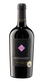Im Glas zeigt der Wein ein dichtes Rubingranat. Das Bouquet eröffnet sich mit dunkler Frucht im Singular: schwarze Kirsche, begleitet von Pflaume und Brombeere. Dazu treten Noten von Kakao, Vanille und ein feiner Anklang an Lakritz. Die warme Herkunft spiegelt sich in weichen, reifen Aromen wider, während dezente Röstaromen den behutsamen Holzeinsatz erkennen lassen. Die Gesamtwirkung ist rund, warm und mediterran geprägt.Am Gaumen präsentiert sich der Zolla Primitivo di Manduria vollmundig und samtig, getragen von reifer dunkler Frucht. Die Tannine zeigen sich weich und gut eingebunden, unterstützt von einer moderaten Säure. Eine fein dosierte natürliche Süße – typisch für Primitivo – verleiht dem Wein zusätzliche Tiefe. Der Abgang ist lang, getragen von Schokolade, Gewürznoten und der charakteristischen Wärme Mandurias. Ein Rotwein, der Konzentration mit Eleganz verbindet.
