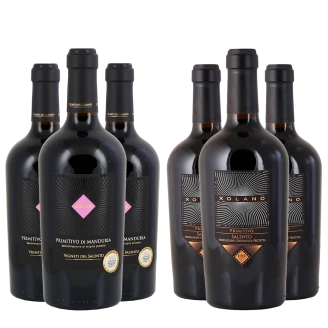 Ein Paket strotzend voll südlicher Wärme: charaktervolle Primitivi mit weicher Frucht und würzigem Kern. Ideal für alle, die die authentische, zugängliche Seite Apuliens entdecken möchten.