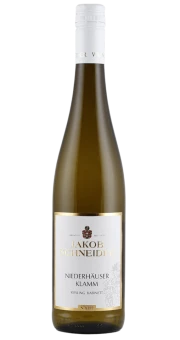 Einen wunderschönen Riesling–Kabinett präsentiert das Weingut Jakob Schneider aus der sechs Hektar großen Lage Niederhäuser Klamm. Die Geländestruktur gleicht einem Parabolspiegel und sorgt für hohe Temperaturen im Sommer. Die Trauben erzielen eine hohe Reife in dieser Ausnahmelage. Dort herrscht zudem ein perfektes Mikroklima für edelsüße Weine. Den Boden prägt vulkanisches Porphyr-Gestein mit einem hohen Erzanteil. Das Weingut selektierte die Trauben bei der Lese ganz penibel. Den Most vergoren sie im Eichenholzfass mit Weinbergshefen. Der Ausbau erfolgte dann im Edelstahltank. Das feine Händchen von Meisterwinzer Jakob Schneider schuf einen fruchtsüßen, frischen Kabinett voller Extrakt.